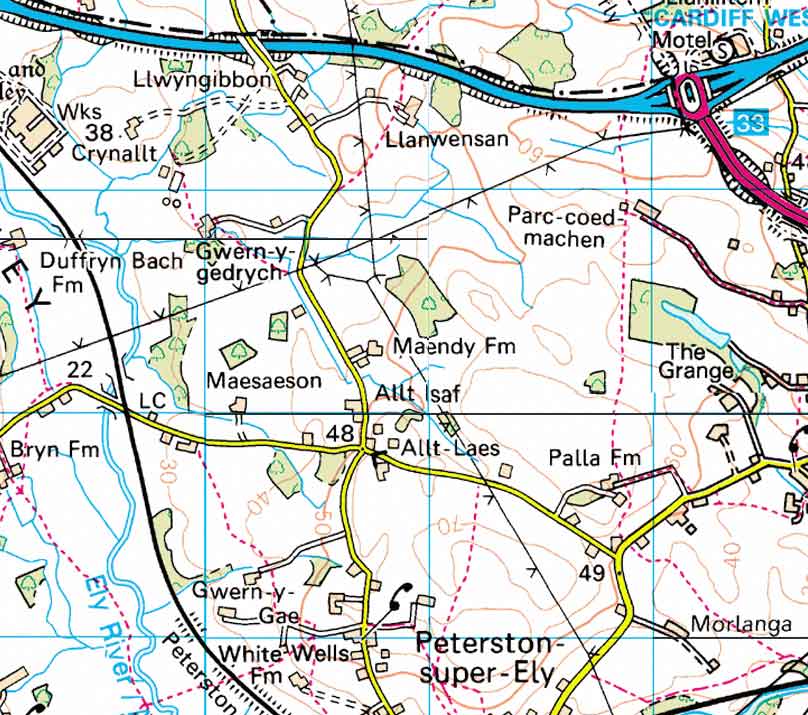 This is Gwern y Gedrych, Gedrych Meadows roughly speaking. Just outside Cardiff. The blue line is the M4.